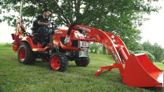 A video on how easy it is to remove and install the backhoe kubota bx23s tractor in under five minutes. Key fast and easy removal install of la340. Check out web or drop by and see them in per.